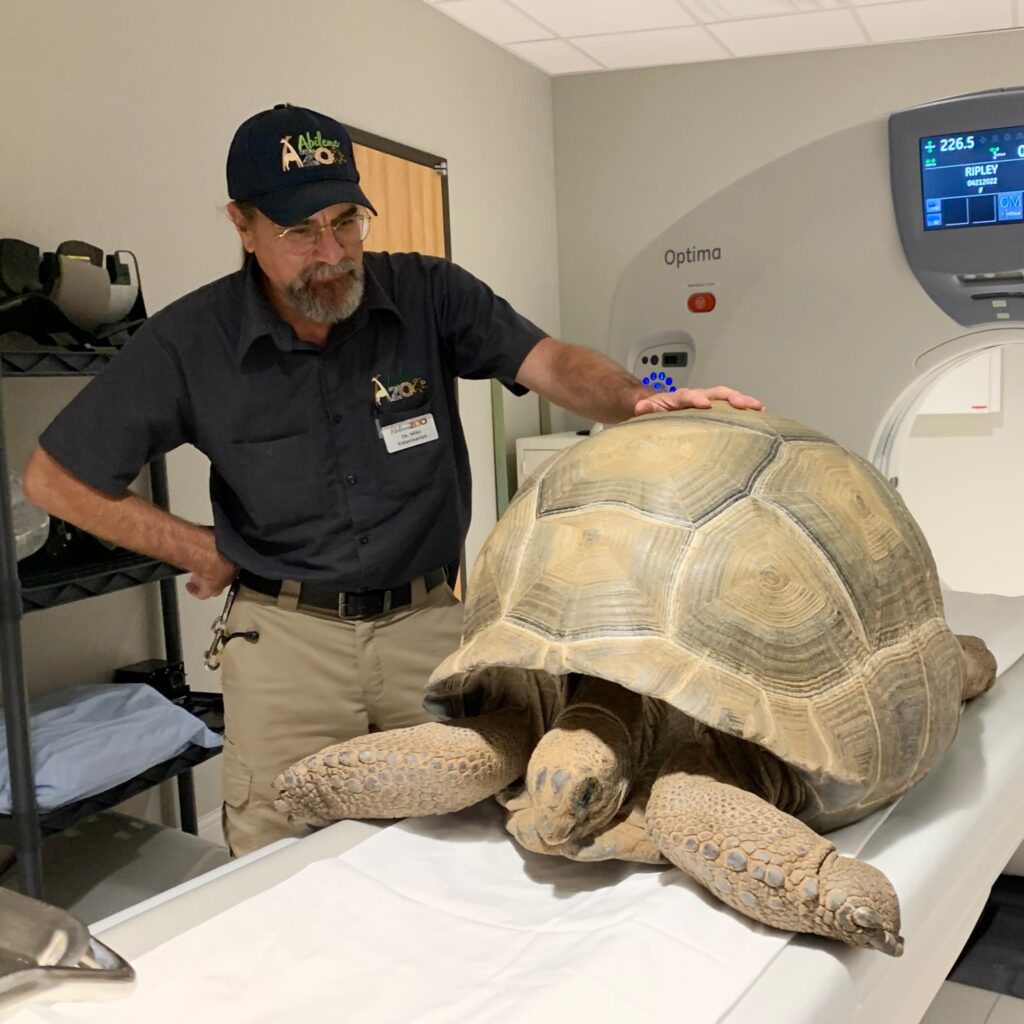 But that’s exactly what happened recently at My Emergency Room 24/7 when the Abilene Zoo brought in a 12-year-old Aldabra tortoise named Ripley for assessment.