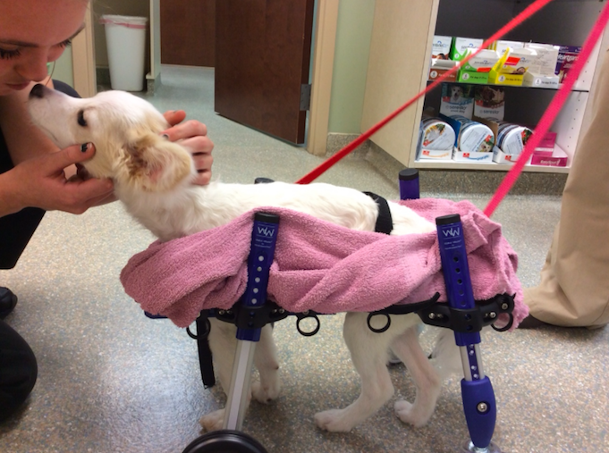 Then, this month, a special cart arrived to allow Lamb Chop to build up leg muscles. And, the results are incredible.