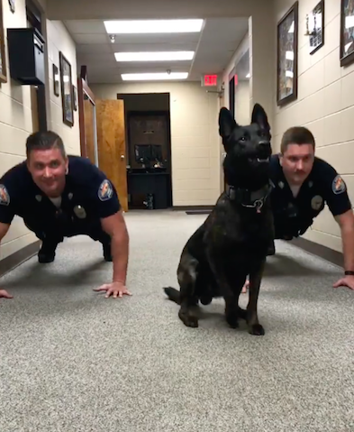 Alabama police dog does push-ups alongside fellow officers