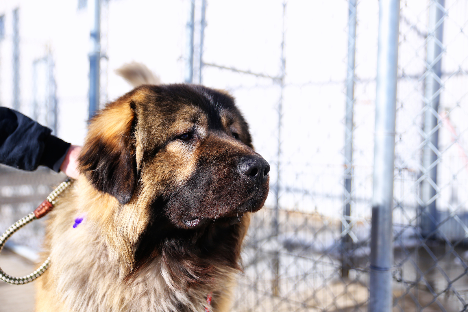 It’s not certain where the dog will end up. But he is huge and huggable. That much is clear.