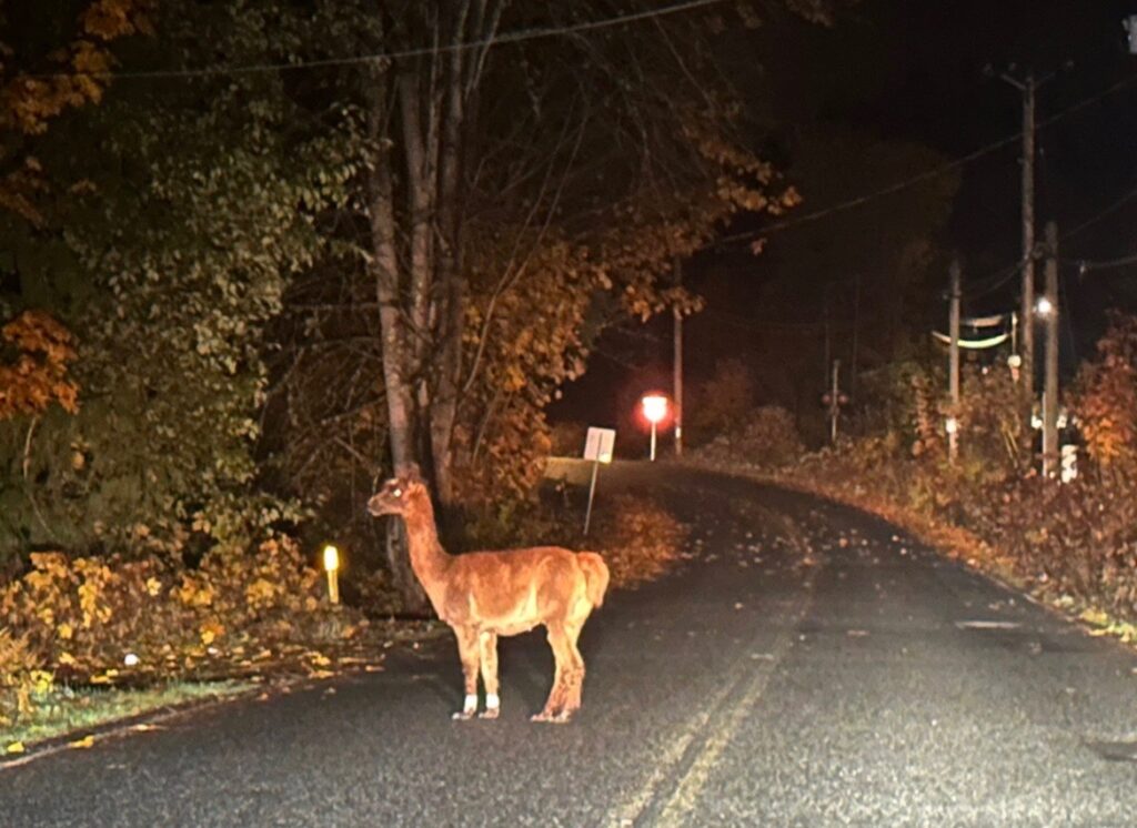 Around 2 a.m. Nov. 7, the alpaca wandered off from the safety of his South Wellington farm and sightings soon came in that Chewy was headed for the highway.