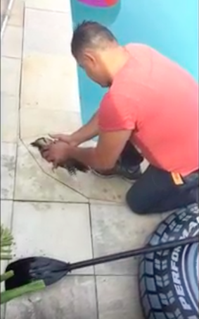 “Dad saved a Kookaburra!” a voice can be heard saying. “He’s alive.”