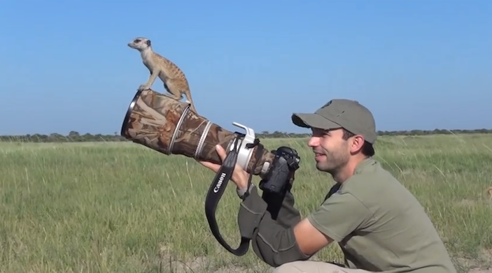 “These meerkats are completely wild but over time they have become habituated to humans,” Burrad-Lucas writes. “This means it is possible to gain their trust and get really close to them. When people are around, these clever little creatures take full advantage of the situation and will sometimes climb on top of the nearest person for a better view out over the long grass. Sometimes they just decide that sitting on a warm human is more comfortable that sitting on the coarse sand!”