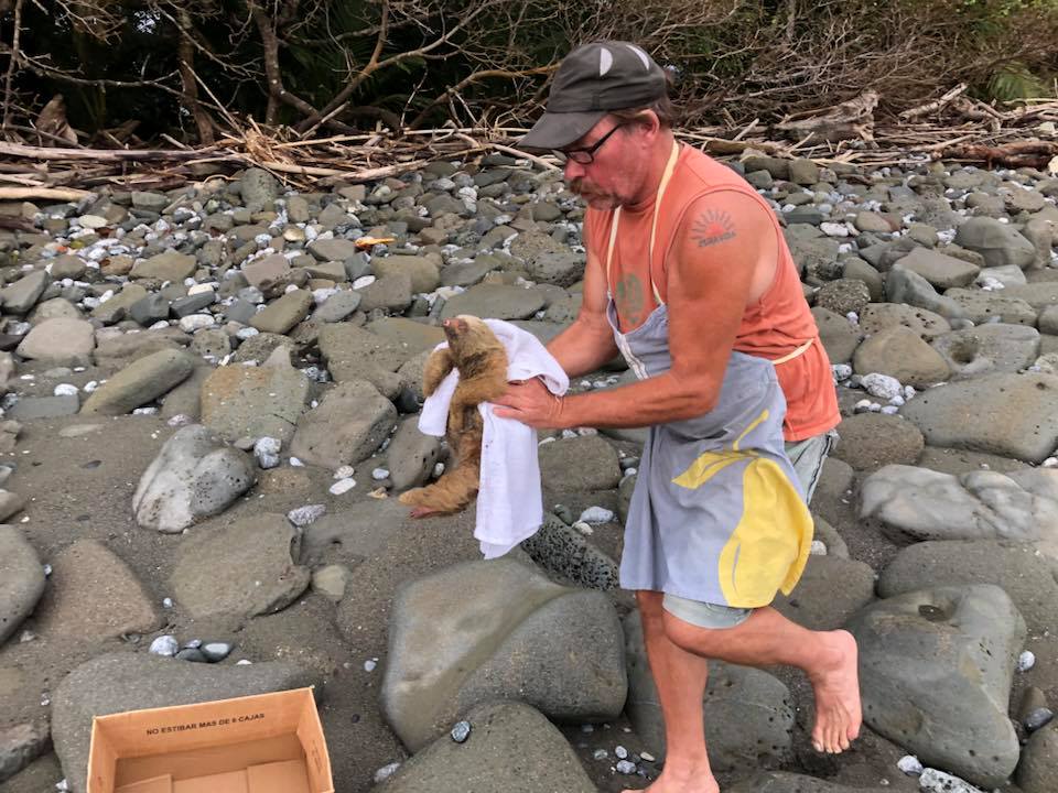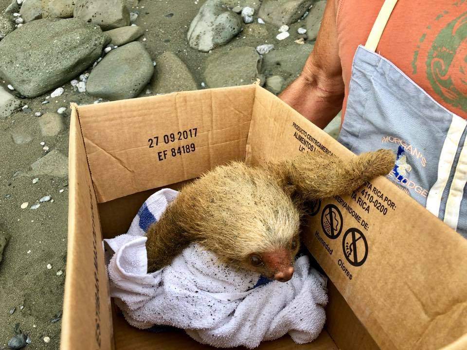Dirk and Lori Morgan, who operate Morgan’s Jungle Lodge in Puerto Jiménez, Costa Rica, happened upon the wayward animal clinging hopelessly to a rock on the beach Monday morning.