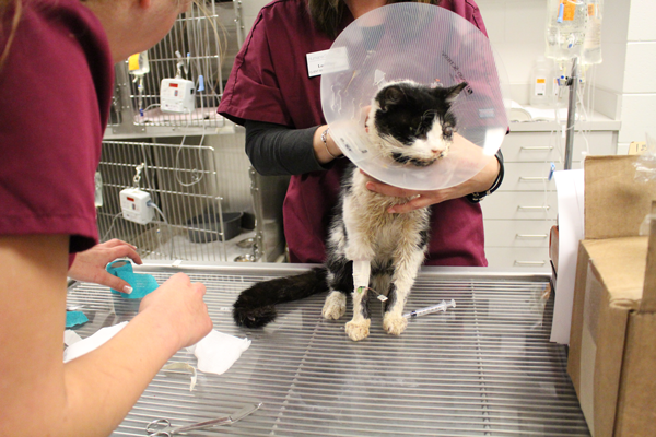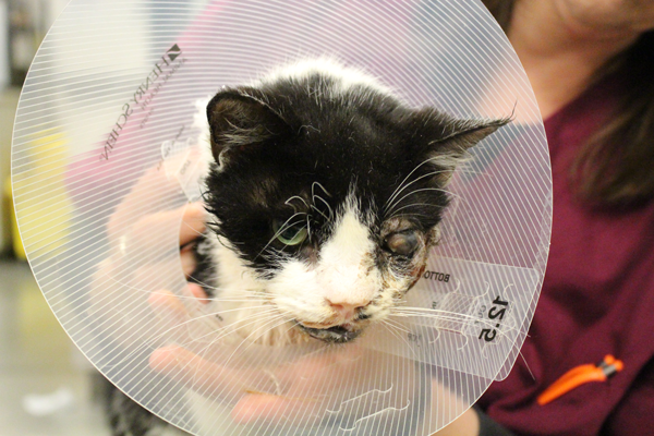 The two to three-year-old cat was found by his owner after being hit by a car in such bad shape that he assumed that the cat was dead.
