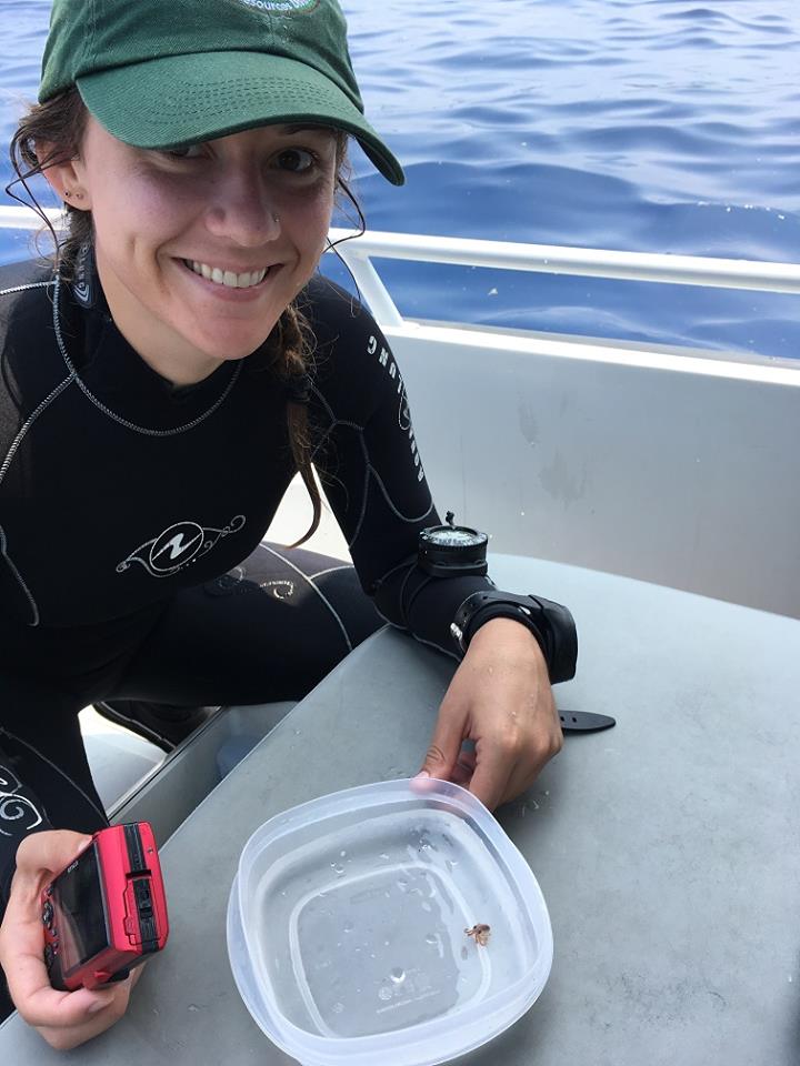 Geoscientists in Parks intern Ashley Pugh with “this beautiful little octopus” found among the debris, but safely released the octopus. Kaloko-Honokōhau National Historical Park Hawaii/Facebook