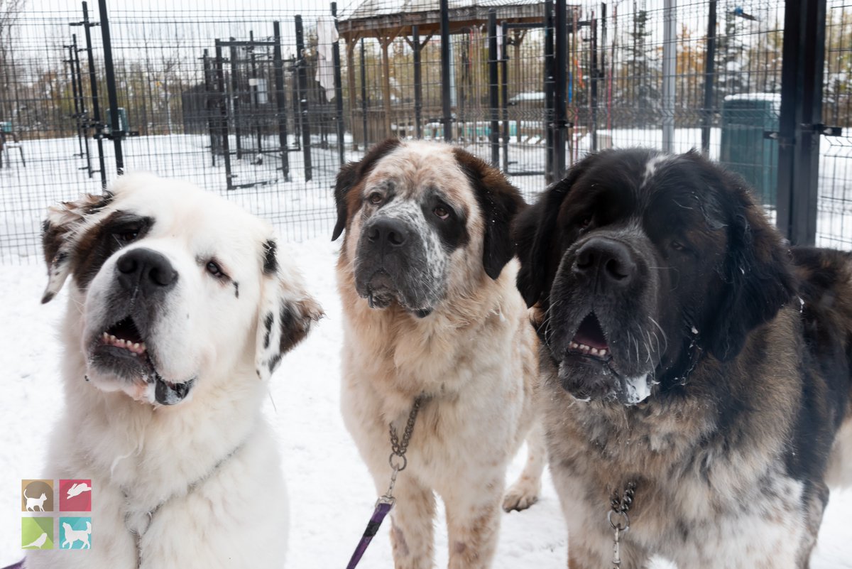 The Edmonton Humane Society says it is facing a “giant adoption challenge” as it looks for someone willing to take in three adult Saint Bernard dogs.