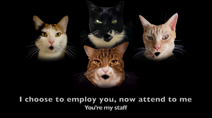 “Cats are royalty,” Serban writes. “We are their willing servants. Bohemian Catsody – enjoy a parody song of the Queen classic, Bohemian Rhapsody, this time, all about CATS!”