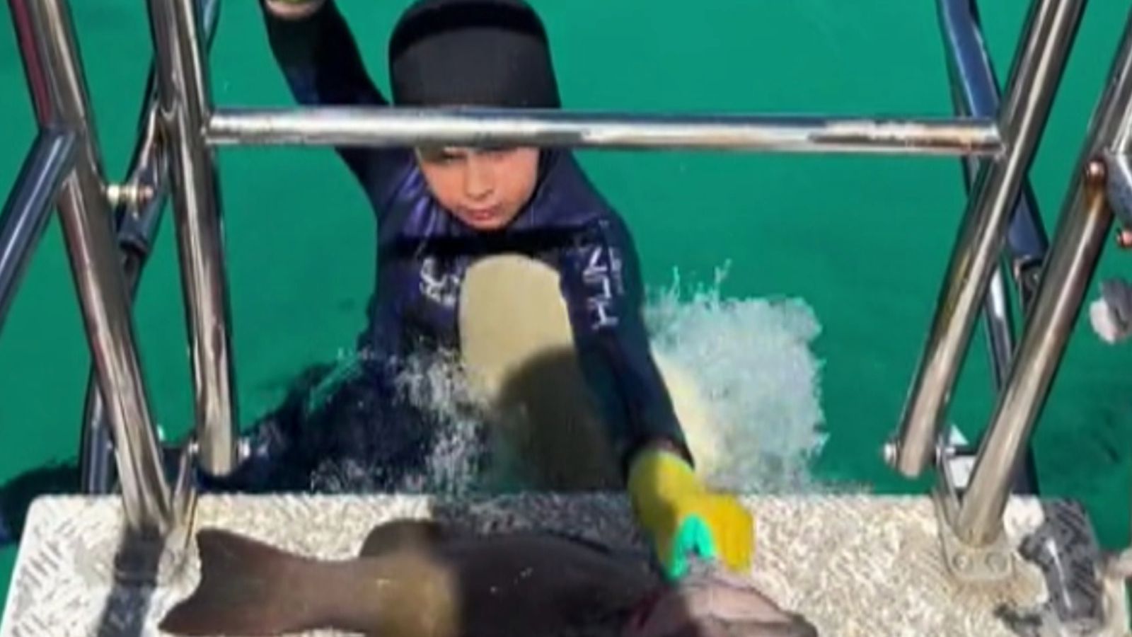The shark quickly let go and “disappeared”, leaving Manni with nothing more than a scratch.