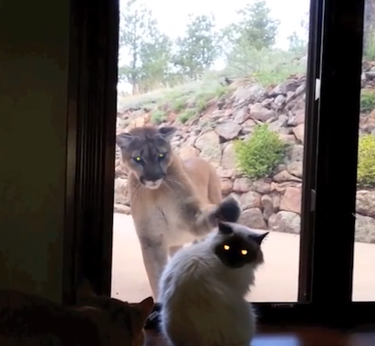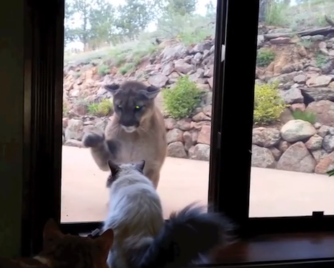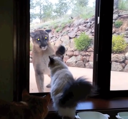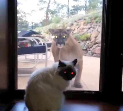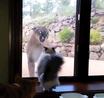 Brave house cat takes on cougar