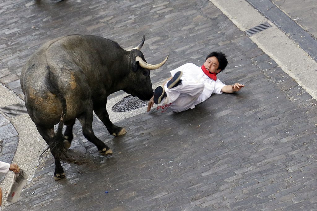 At the famous San Fermin festival, first popularized by Ernest Hemingway in his novel The Sun Also Rises, participants fell, were stampeded and at least 30 people were injured.