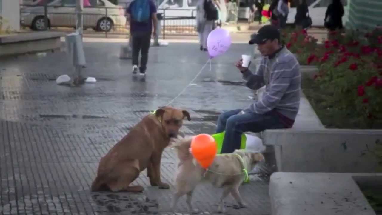 Balloons help stray dogs by letting people know Estoy Aqui (I am here)
