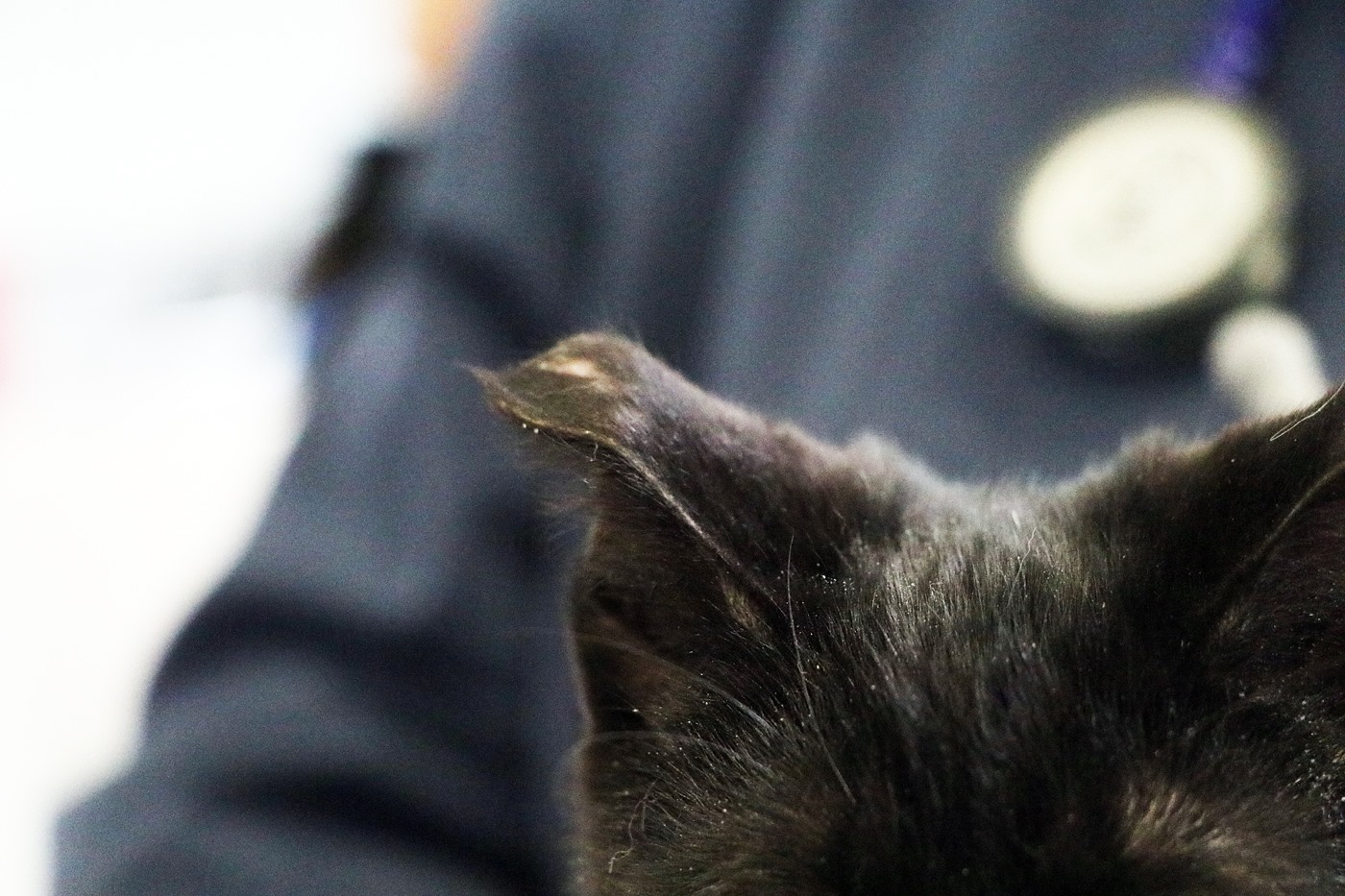 Little Spark has frostbitten ears from a chilly ride under the hood of a car. Calgary Humane Society/Facebook