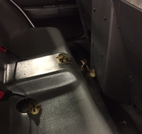 “A passing motorist had corralled the five ducklings that appeared in distress without their mother being insight,” Mounties said yesterday. “Unfortunately, all efforts to locate the mother duck were futile. The five little ducklings were then scooped up and placed into the rear of the police vehicle for safety.”