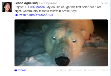 The dead polar bear and the cabinet minister: “Enjoy!!” December 6, 2013 Canada’s Environment Minister shows us once again how tweeting can get you into trouble. Leona Aglukkaq retweeted a picture of a dead polar bear,… Continue Reading