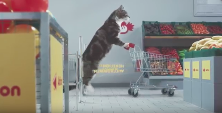 “In our video, watch our playful four-legged friends at Netto,” the company notes in its YouTube upload, which has 12 million views. “Sweet cats slide through the shelves and push the shopping cart in front of them. Whether Veggie mice or the favorite tuna – at Netto, there is the perfect choice for the funny cat of today.”