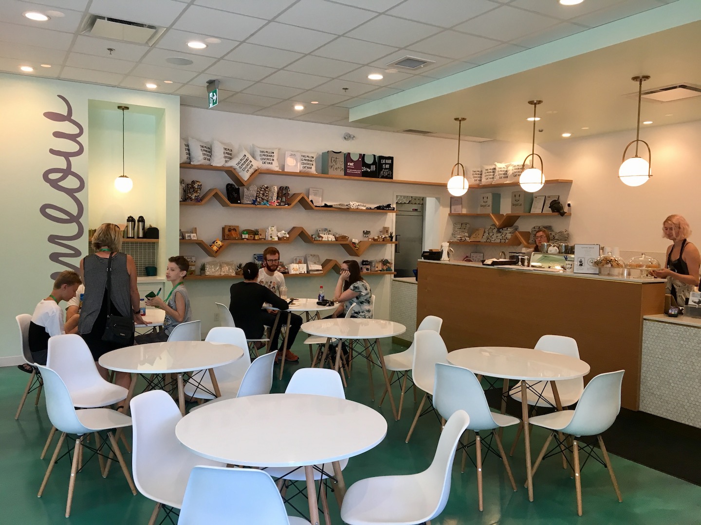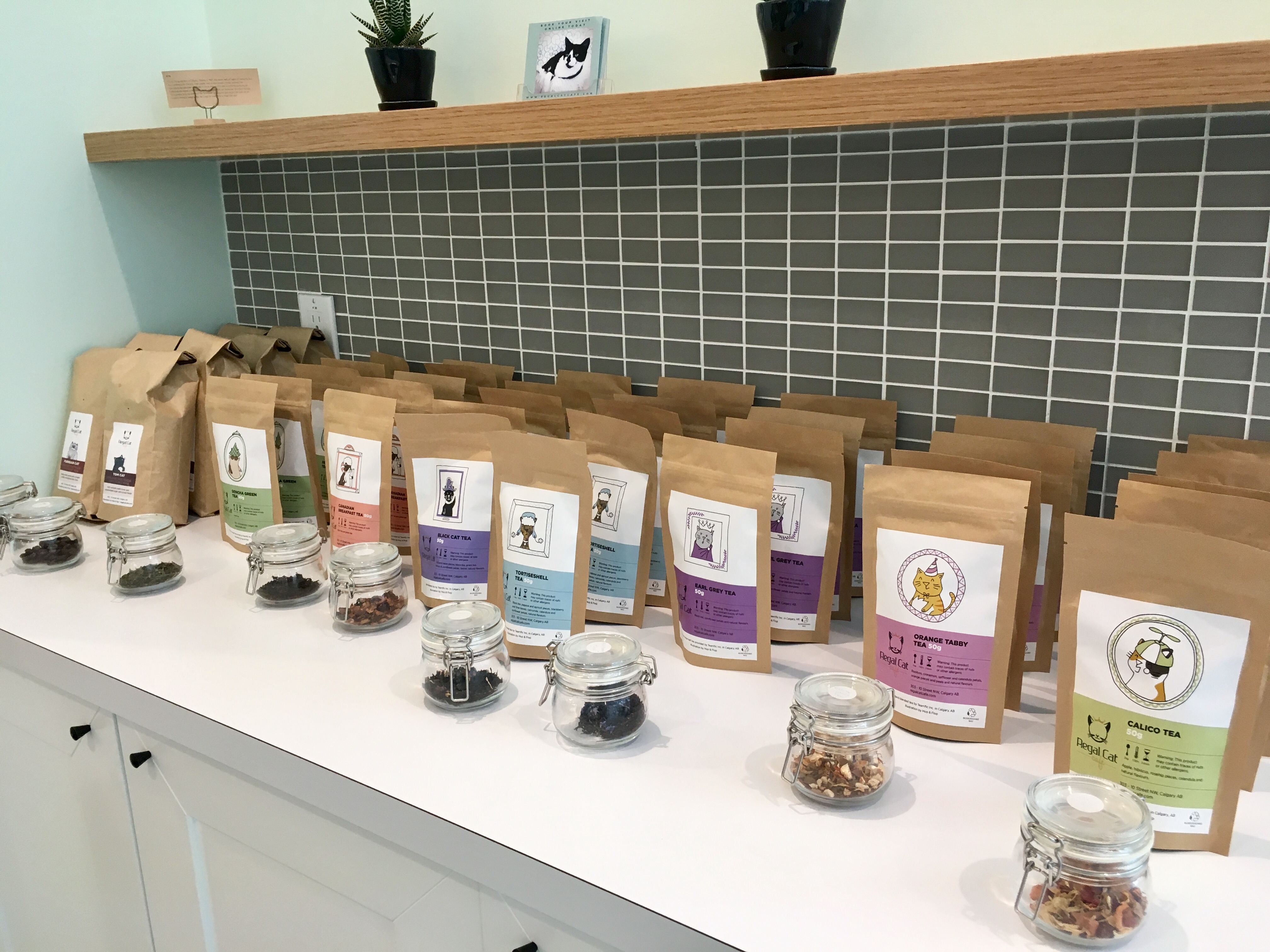 This is the café. Bright, cheery and cat-themed goodies galore.