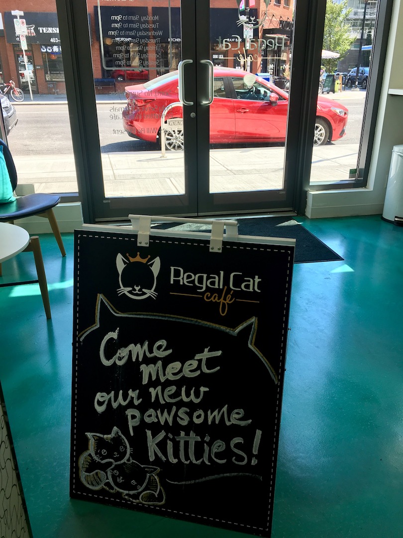 That’s right. All the cats at the Regal Cat Café in Calgary, Alberta are also looking for furr-ever homes.
