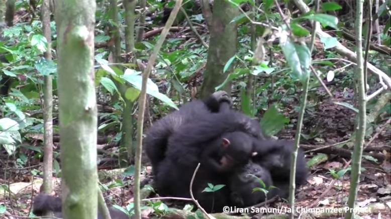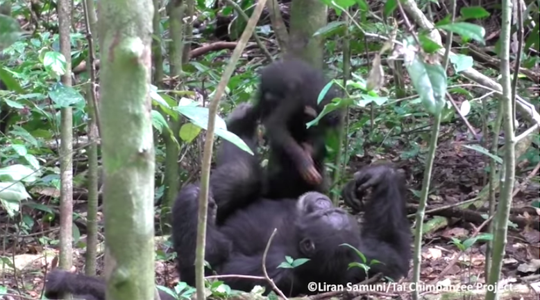 The Tai Chimpanzee Project recently captured the most incredible video of a male chimpanzee playing airplane with a baby. Laying on his back with his feet in the air, the baby is bounced around like a rag doll.