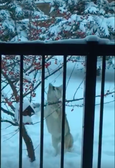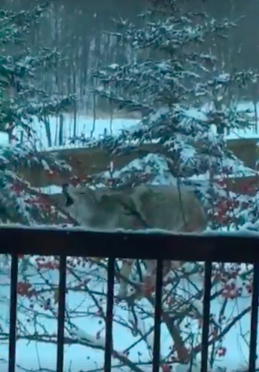 Mona Giles spotted – and snagged a video of — a creative coyote eyeing some berries in central Alberta where it recently snowed.