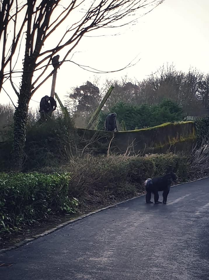 “Got a bit more than we bargained for at Belfast Zoo today,” she posted on Facebook Saturday, “when the chimps decided to escape and take a stroll 🐵 #belfastzoo.”
