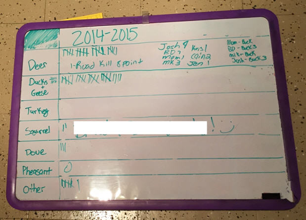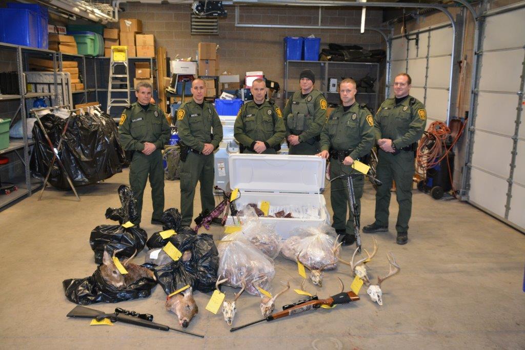 “Multiple firearms, bows, crossbows, and other hunting equipment, as well as skulls, antlers, hides and meat were seized. Also taken was a Dry Erase Board with a tally of each individual’s harvest totals for the year,” officials said.