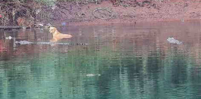 Crocodiles skip doggie meal and instead nudge stray pooch to safety in river in India