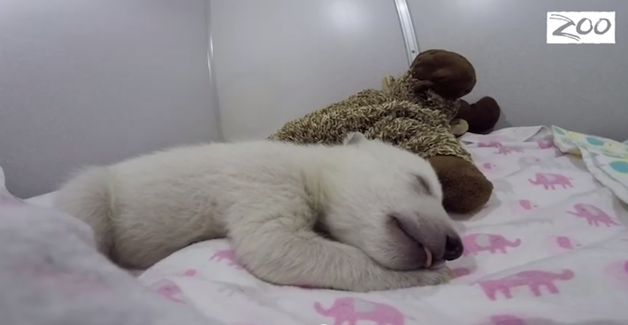 Watch this polar bear cub deep in dreamland and you’re guaranteed to drift off into a warm fuzzy slumber. The Columbus Zoo and Aquarium just posted this delightful video of a female cub catching some Zzzzs.