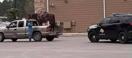 And later posted a series of photos, including the same truck pulled over by police while carrying another horse in the back.