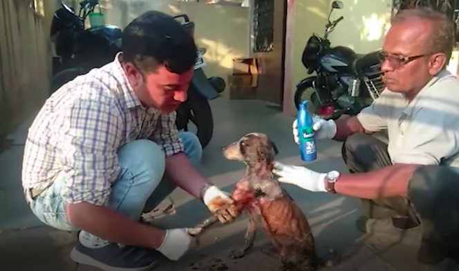 Dog covered in tar and stuck to the ground in India makes amazing recovery