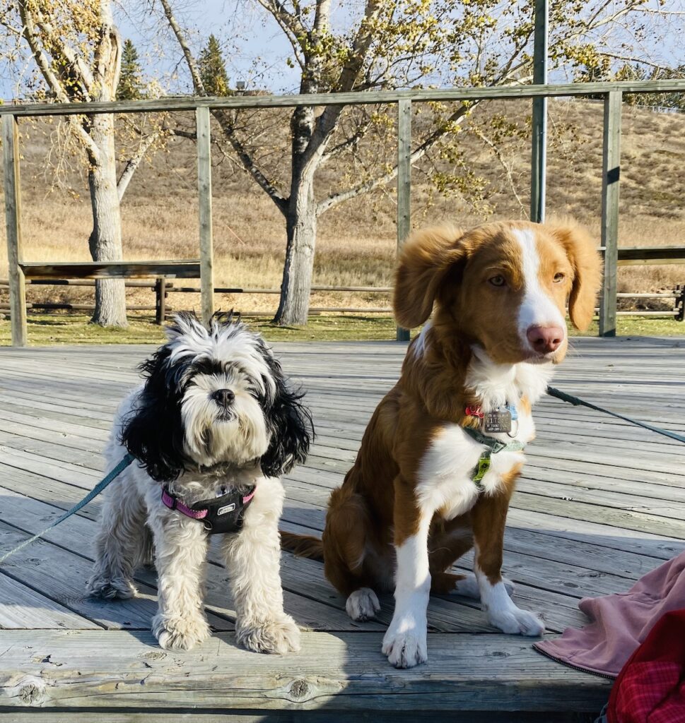 Young dogs enjoying a fall day.