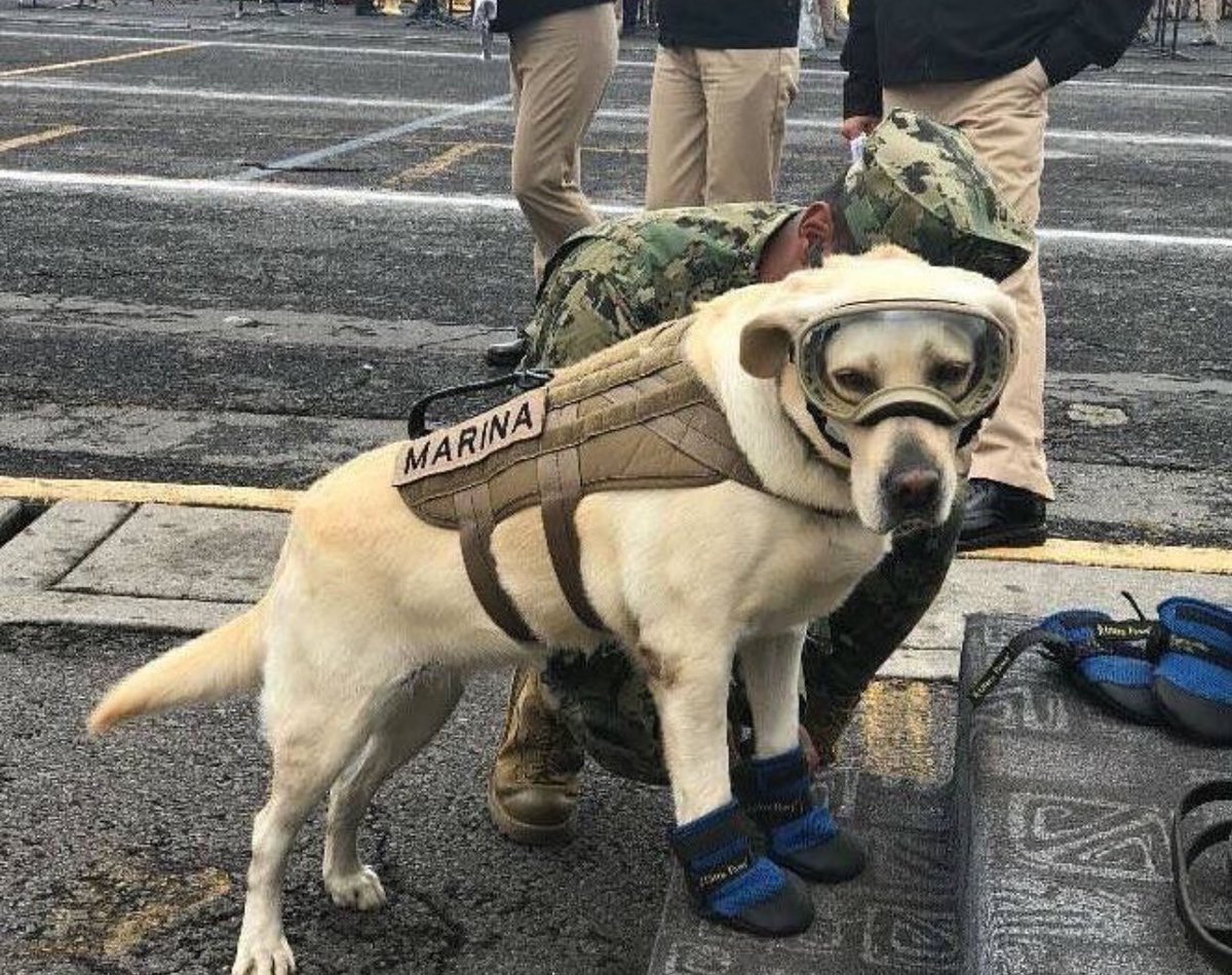 Conozcan a “Evil”, un perro rescatista de la Marina de México que auxilia a las personas en edificios colapsados.