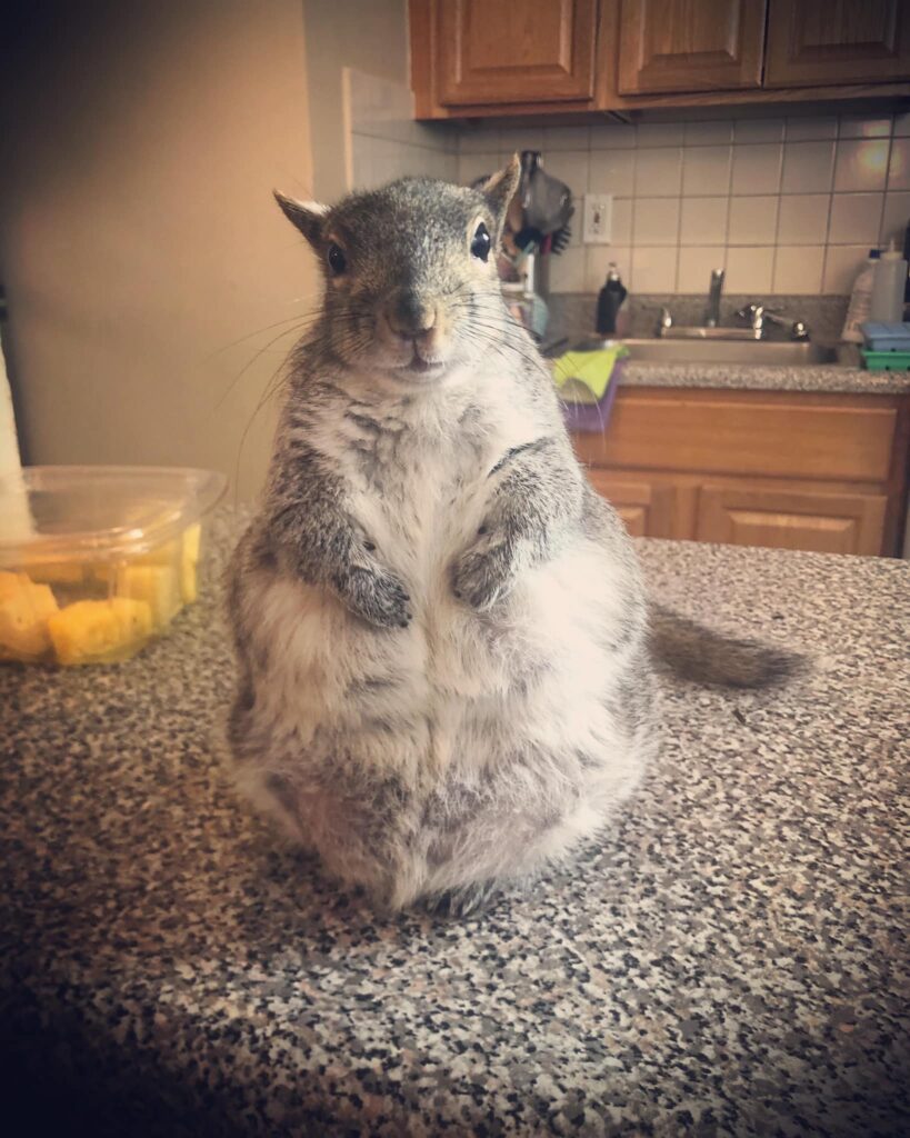 Despite being on a “very strict” diet specific for non-releasable squirrels, Thumbelina developed a bit of weight problem.