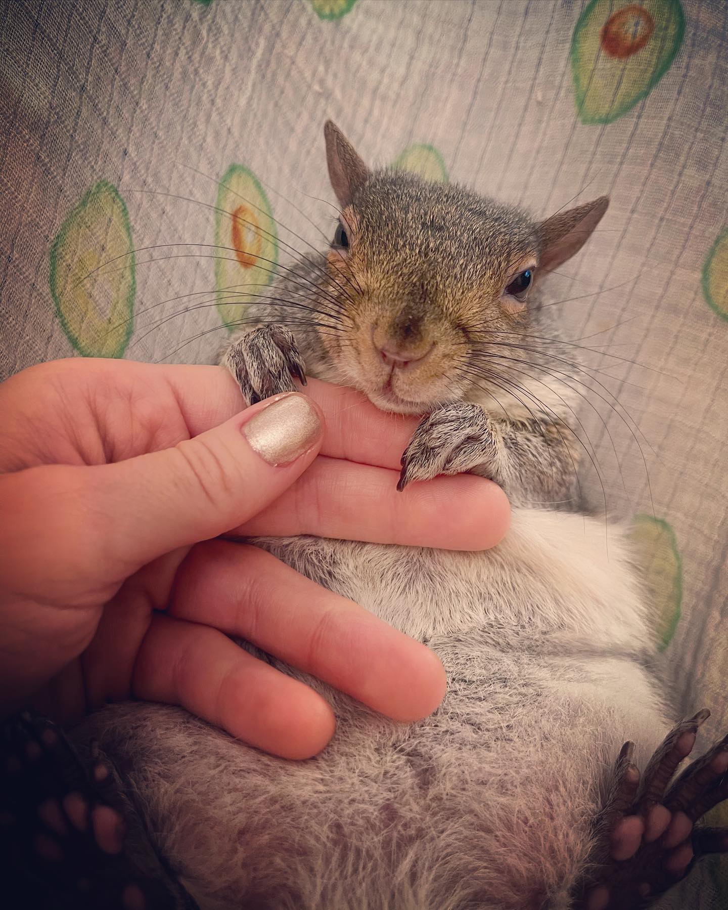 Thumbelina is an Eastern Grey Squirrel rescued back in March, 2016 after her nest was destroyed amid construction in the Bronx. Her sister died not long after. Attempts to reunite the tiny baby with her mother would later fail.