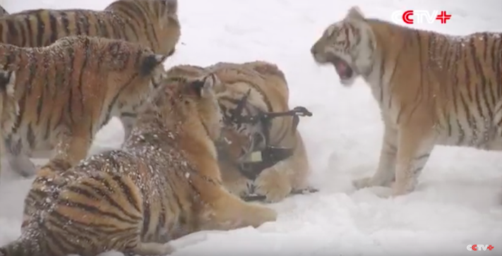 Send a drone up over a streak of Siberian tigers. See what happens. Predictably, they lay chase and knock down the wayward gadget.