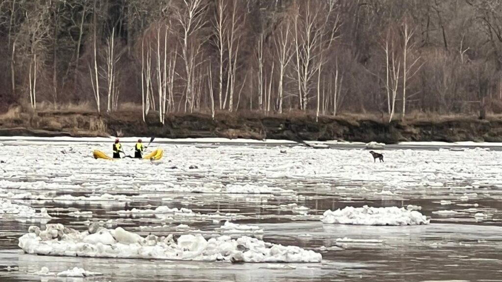 At 6:57 am Wednesday, Edmonton Fire Rescue Services responded to a call about an ice float carrying a dog drifting down Alberta’s dangerously swift and cold North Saskatchewan River.