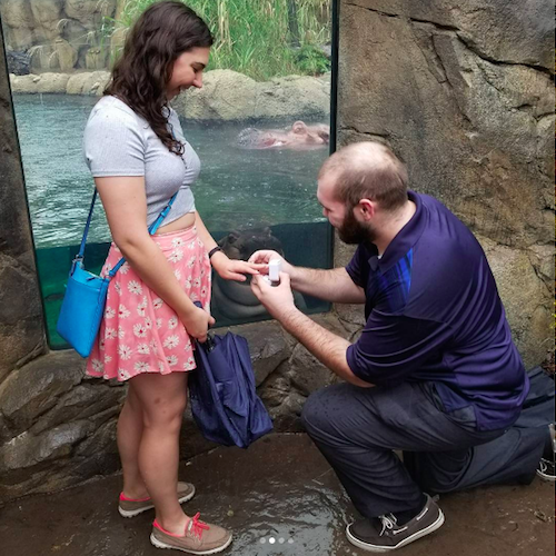 They wanted to see Fiona the hippo, who is probably the most famous critter at the zoo. The 550-pound, 9-month-old hippopotamus is truly a viral superstar. While at the hippo tank, Hayley handed her phone to a stranger and asked to snap some photos of the couple. And that’s when the magic really started.