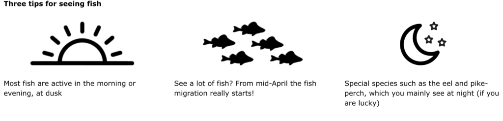 Fish swim every spring from the Vecht, via the Oudegracht and the canals, to the Kromme Rijn. They swim straight through Utrecht, looking for a place to lay eggs and reproduce.