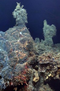 A research team, led by Dr Jon Copley, explored an area the size of a football stadium on the ocean floor, pinpointing the locations of more than a dozen mineral spires known as ‘vent chimneys’.