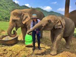 The boy seemed taken with Dani and Khun Dej. Dani, another rescue, had a boy elephant but she was denied raising her baby when the owners sold him off to a circus camp.