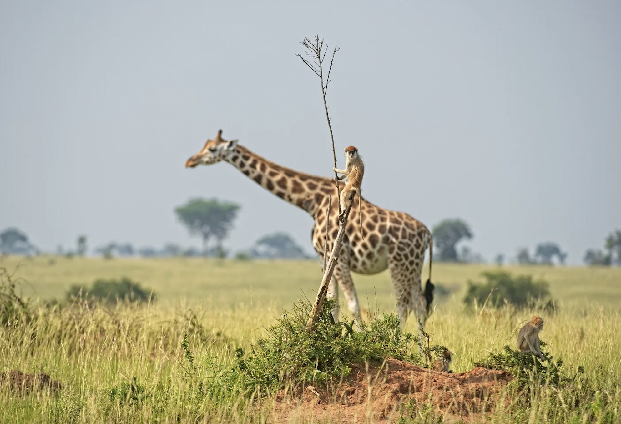 One of the photos this year includes a giraffe with a monkey on its back, and a happy vine snake.