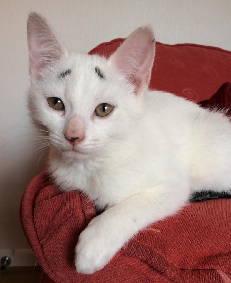“His eyebrows move all over the place when he’s singing so Andy decided it was the perfect name for our kitten