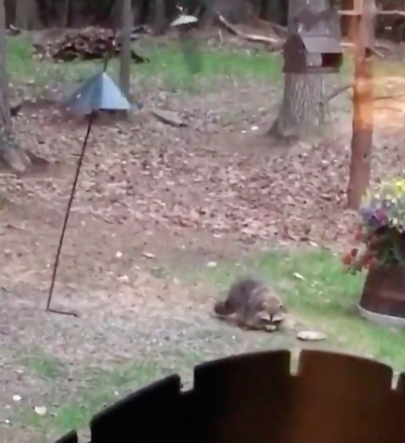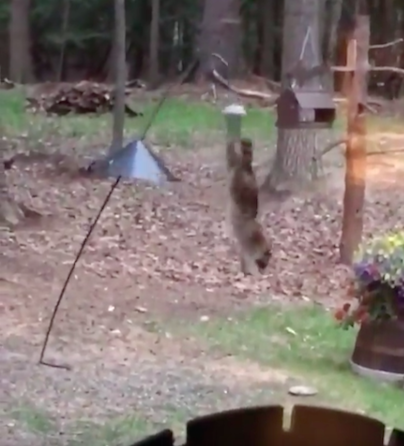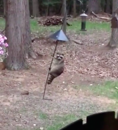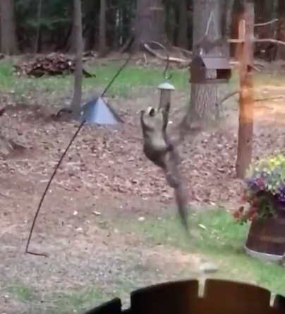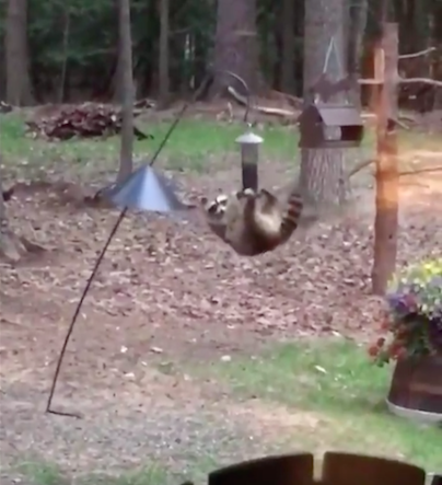 The trash panda unscrewed the bottom of a bird feeder. Unscrewed it. With its back paws while hanging upside down Tom Cruise style.