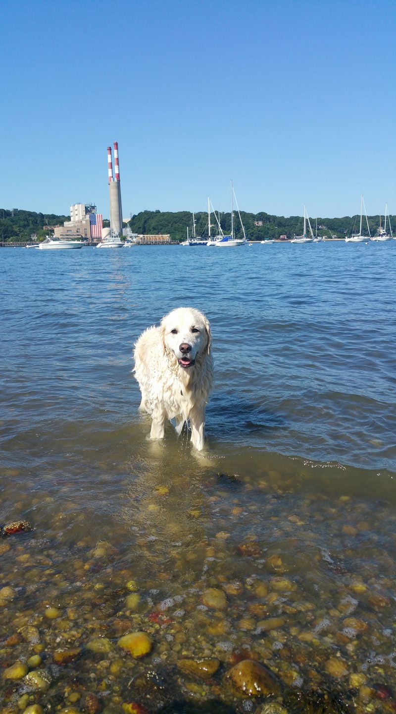 Storm, whose owner Mark Freeley is a pro bono attorney for animal rights group Last Chance Animal Rescue leaped into the water and pulled the fawn out.
