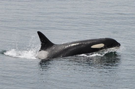 The orca can be recognized due to her saddle patch, which is like a set of fingerprints that consists of a white patch behind every whale’s dorsal fin.