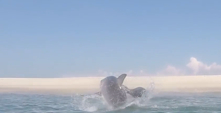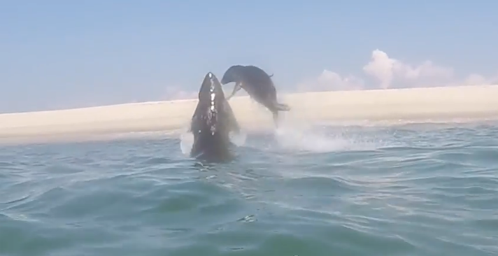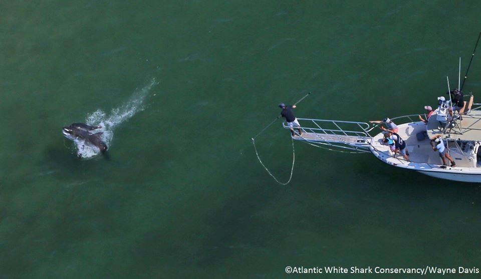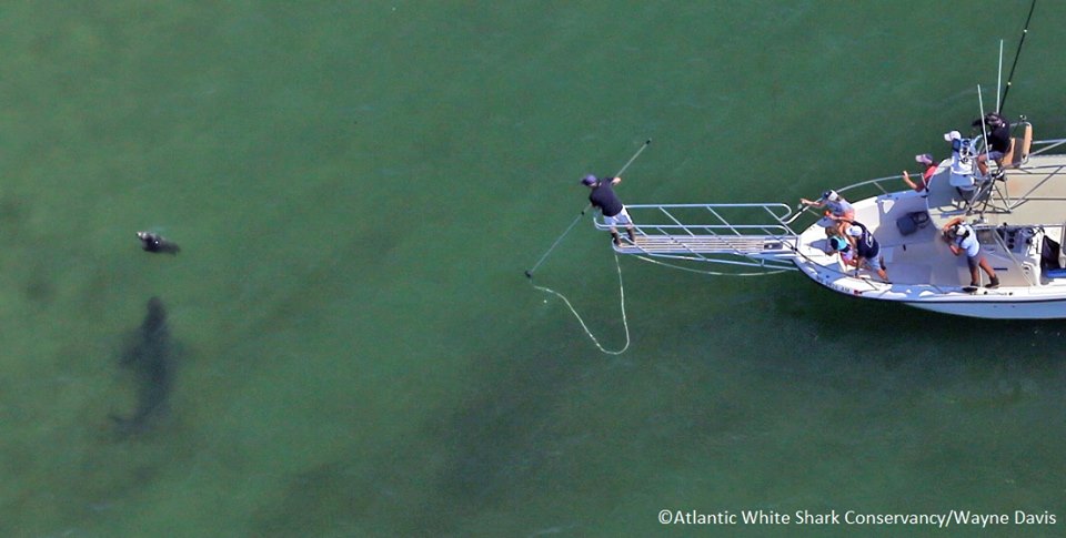 This failed predation attempt took place on Monday off Monomoy, Cape Cod as researchers with the Massachusetts Division of Marine Fisheries and the Atlantic White Shark Conservancy were on patrol.