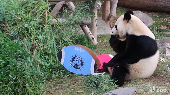 And a giant panda, currently residing at the Toronto Zoo, but who will soon take up residence at the Calgary Zoo, made his pick for the 105th Grey Cup being played in Ottawa.