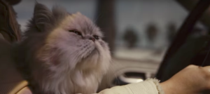 The interior footage of the driver (who’s not Laman’s real girlfriend) shows a woman with a coffee pot beside her and a grey cat sitting in the car.