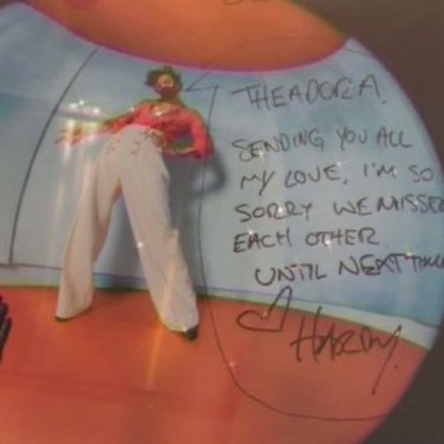 Theadora has kept her social media private so as not to be inundated with thousands of interview requests, but she did share a few pictures of Styles that her dad snapped in her home, and included the note the singer left for her.
