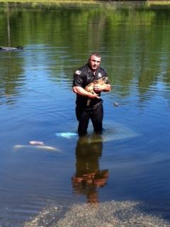 “Officer Harriman, an avid dog lover, then removed his gun belt, gave it to his fellow officer and dove into the murky water. He then managed to open the door and enter the vehicle and retrieve the dog. The dog was returned to its owner in good health but a little frightened,” police said in a statement.